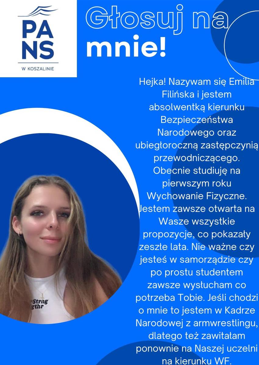 2. Emilia Filińska – Z-ca Przewodniczącego Samorządu Studentów,
